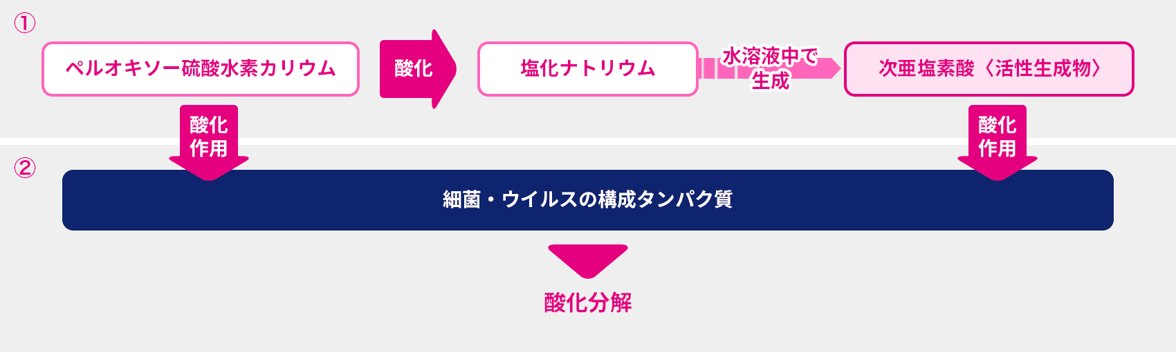 次亜塩素酸ナトリウム溶液1,000ppm相当の酸化力を有する塩素系除菌・洗浄剤であり、幅広い除菌作用が期待できます。