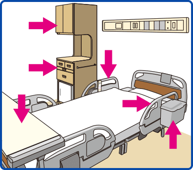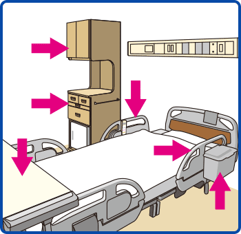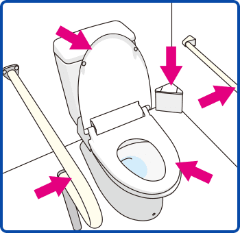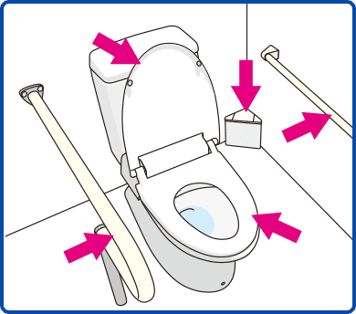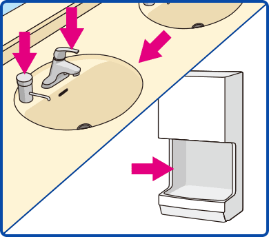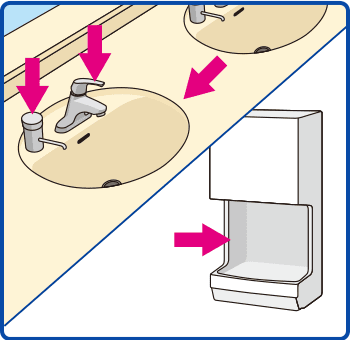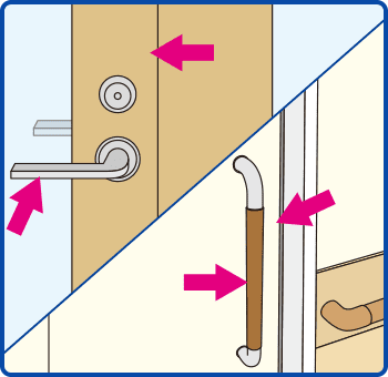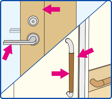 ※2. ドアノブ、手すり、机、家具、スイッチ類、便器・便座、水栓レバー、蛇口、床等。